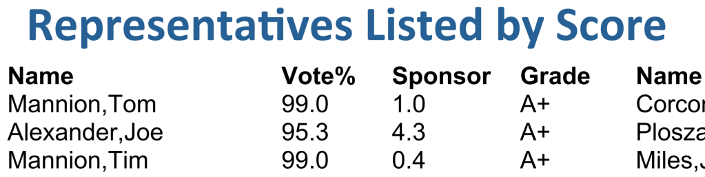 I’m pleased to report my RINO score, as calculated by Granite Grok, was a low 1.3% (voting against the caucus on only 2 roll calls)! My brother joins me in the sub-5% club at 3.4%. We apparently differed on opinion on 3 bills, who knew?